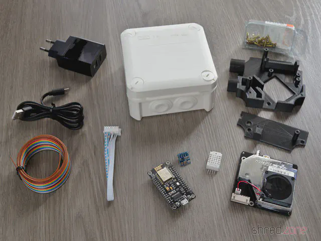 - 1x DHT22 Temperatur- und Luftfeuchtesensor (normalerweise optional, hier aber erforderlich, da er eine Öffnung im Windkanal abdichtet)