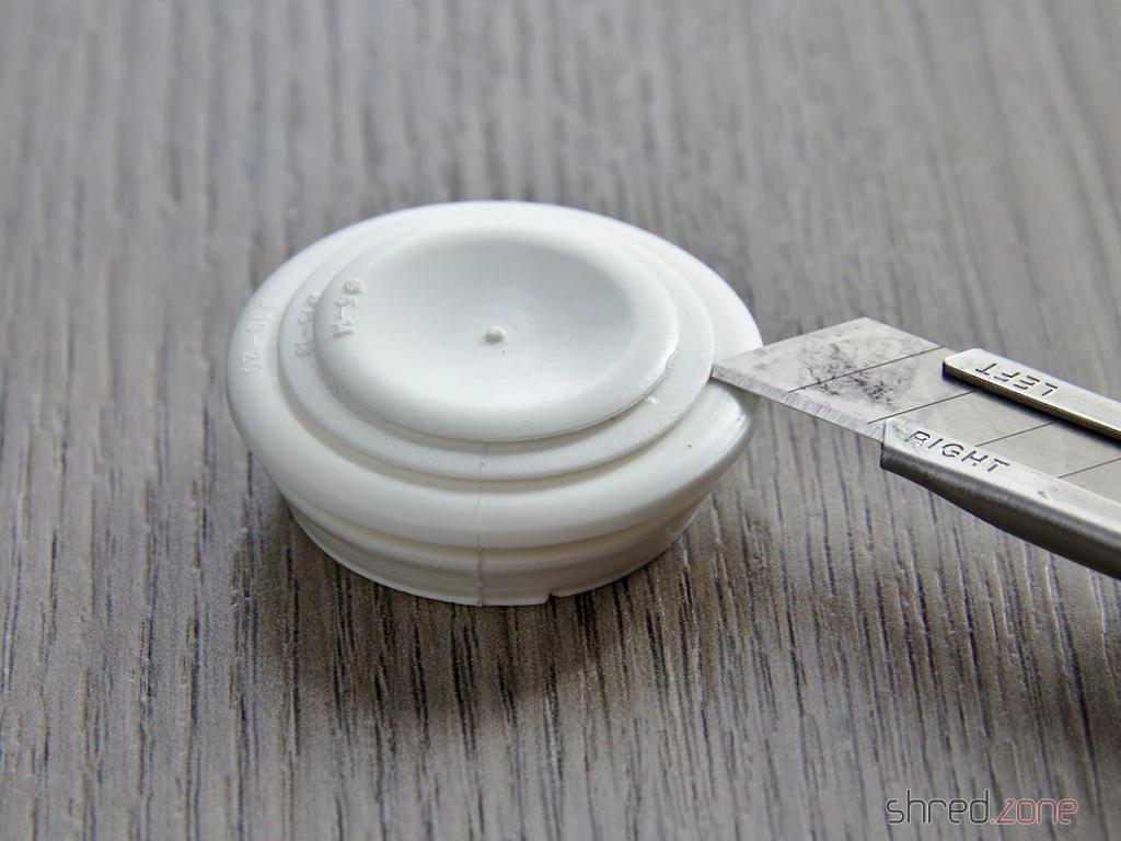 Als erstes entfernt man die beiden Einsteckdichtungen von einer Seite des Abzweigkastens und schneidet sie bei 19-20 mm Durchmesser auf.