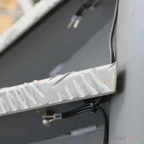 Nachdem das Kabel sicher verbunden war, zog ich die Schutzfolie von der Rückseite des LED-Moduls ab und klebte es unter die Stufe.