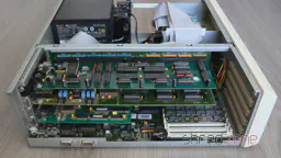 Jetzt war ich zuversichtlich genug, das CPU-Modul und die SIMMs wieder einzubauen. Ich habe auch einen Scandoubler eingesetzt und einen Monitor daran angeschlossen. Dann habe ich das System wieder eingeschaltet. Und ein paar Sekunden später hatte ich ein Bild.