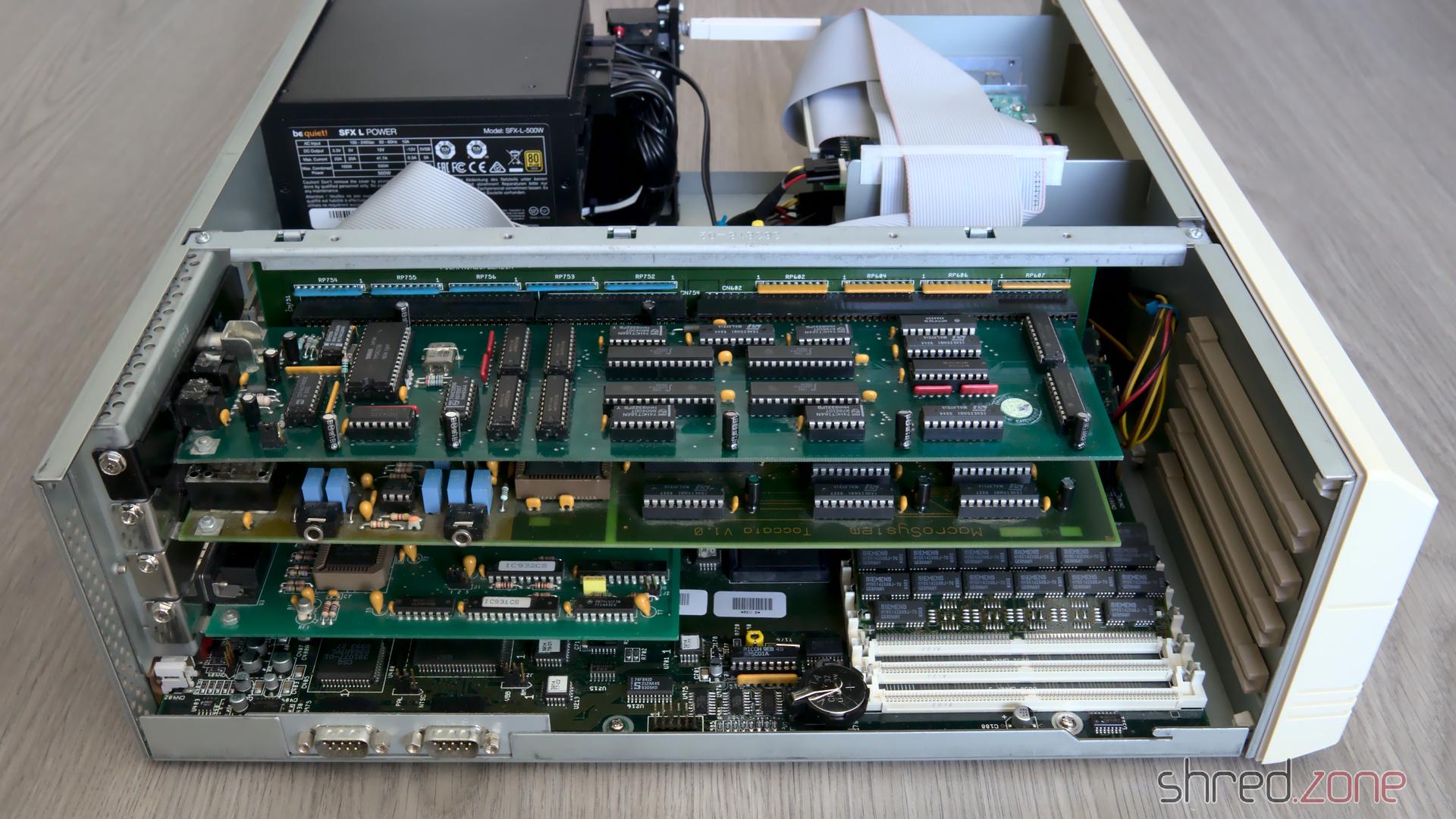 Auf der anderen Seite sind die frisch mit neuen Kondensatoren versehenen MaestroPro- und Toccata-Soundkarten bereits wieder an ihre Zorro-Steckplätze zurückgekehrt.