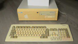 Der Computer hat in den vergangenen Jahrzehnten stark gelitten. Die Pulverbeschichtung der Metallabdeckung hat viele tiefe Kratzer von CRT-Monitoren abbekommen, die darauf abgestellt wurden. Die Plastikfront hat einen stark vergilbten Farbton angenommen. Um die Sache noch schlimmer zu machen, befand sich ein Aufkleber auf der Vorderseite, der den Kunststoff vor dem Vergilben bewahrte, aber jetzt ist stattdessen der Umriss dauerhaft in die Front „eingebrannt“. Die Tastatur befand sich in einem ähnlichen Zustand, wenn auch nicht ganz so stark vergilbt.