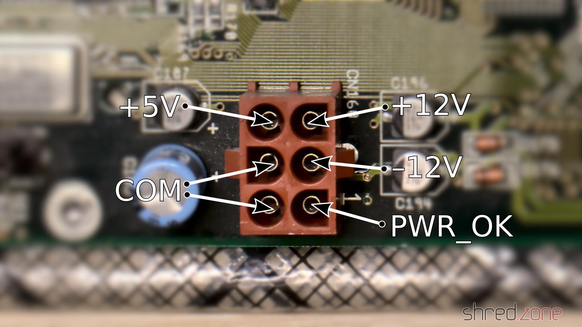 Wenn alles zusammengebaut ist, stell sicher (stell doppelt sicher, stell sogar dreifach sicher), dass die Verkabelung korrekt ist, aber steck den Stecker noch nicht in das Mainboard. Drücke nun den Einschaltknopf und überprüfe die Spannungen. PWR_OK sollte 5V haben, aber es könnte flattern oder sogar 0V sein, weil das Netzteil im Moment keine Last hat. Die anderen Spannungen müssen korrekt sein und innerhalb einer Toleranz von 5% liegen. Halte den Test kurz, da er das Netzteil belasten kann.