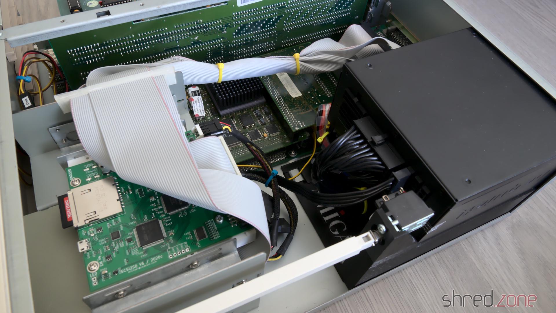 Die alten mechanischen Festplatten waren laut, langsam und produzierten viel Wärme. Da ich meinen Amiga so leise (und modern) wie möglich haben möchte, habe ich mich stattdessen für einen SCSI2SD Festplattenemulator entschieden. Alternativ kann auch ein IDE-zu-Compact-Flash-Adapter an den internen IDE-Header angeschlossen werden.