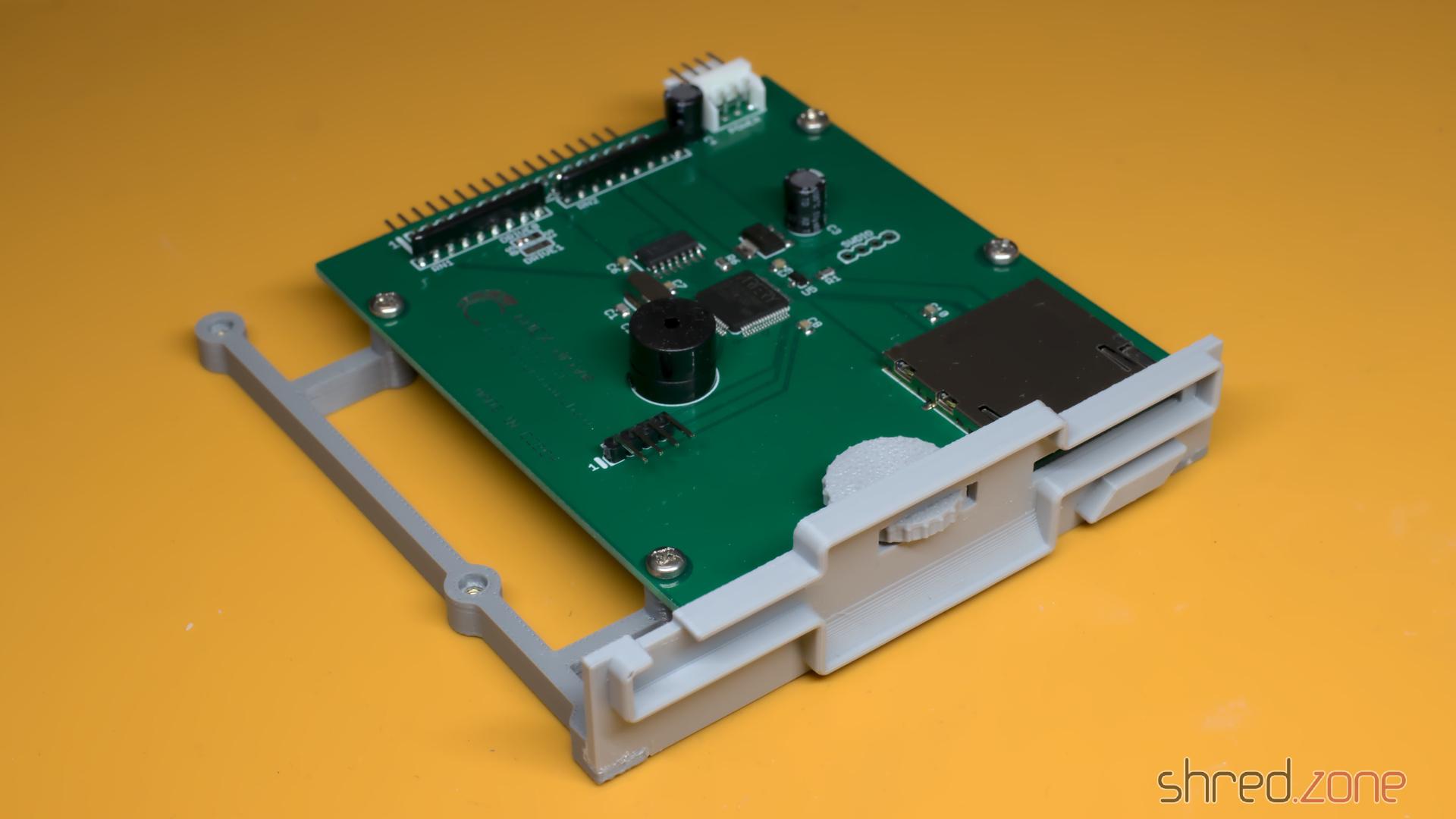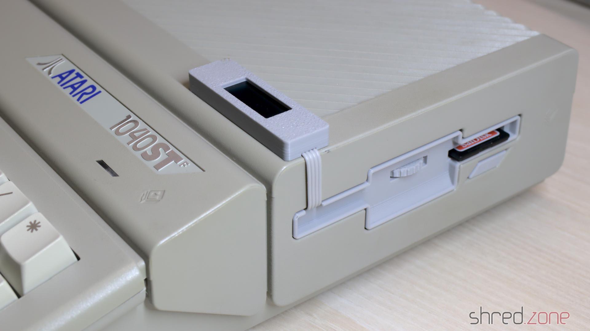 Da ich vorher nie einen Atari ST hatte, habe ich keine Disketten und bin auch nicht sonderlich scharf darauf, welche zu erstellen. Zum Glück gibt es Centuriontech GOEX Laufwerke auch für Atari ST Computer. Es ist ein Drop-in-Ersatz für das originale Laufwerk, verwendet aber stattdessen .st-Dateien auf SD-Karten. Die Disketten-Datei kann über einen Encoder und ein winziges OLED-Display ausgewählt werden. Der ST selbst wird nicht bemerken, dass kein echtes Diskettenlaufwerk angeschlossen ist.