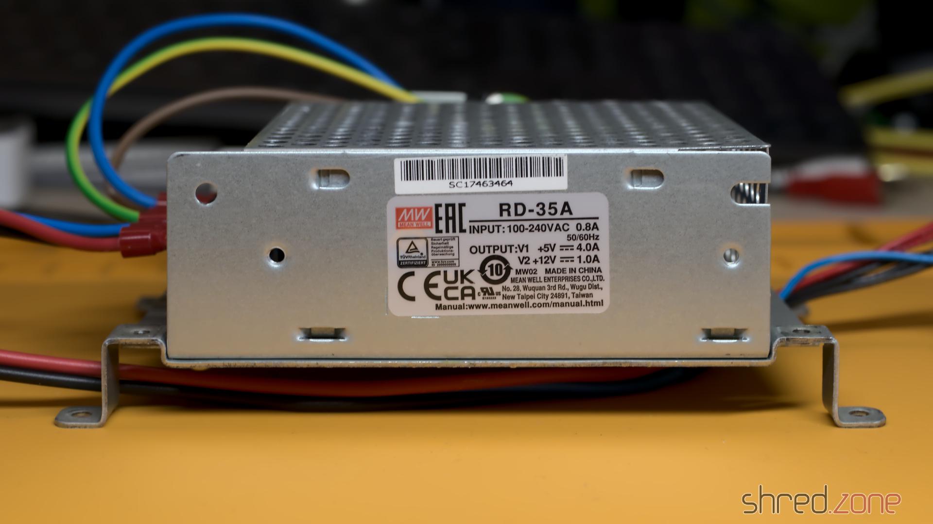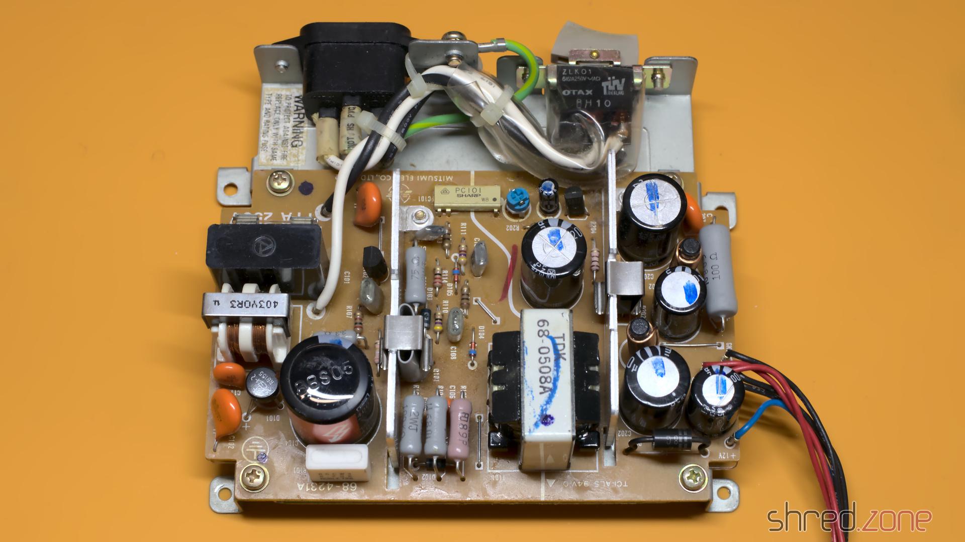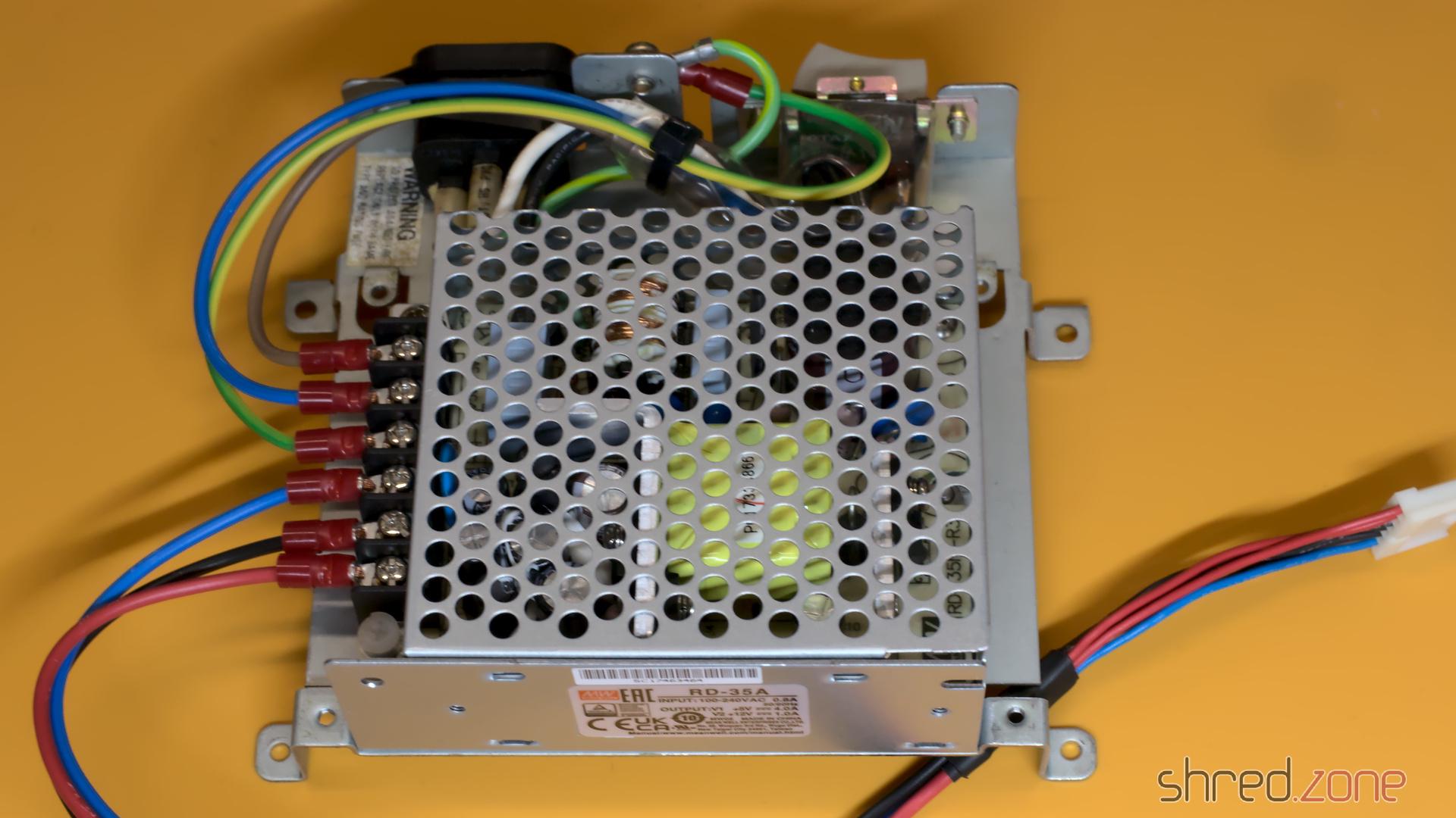In meinem ST fand ich ein Mitsumi SR98 Netzteil. Es sah in Ordnung aus, abgesehen von einem gewölbten Kondensator. Allerdings soll dieser Typ von schlechter Qualität sein, also entschied ich mich, es durch ein modernes MeanWell RD-35A zu ersetzen.
