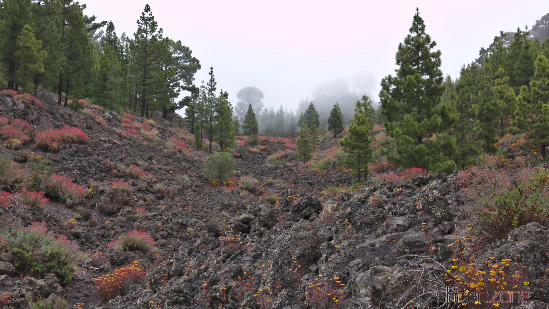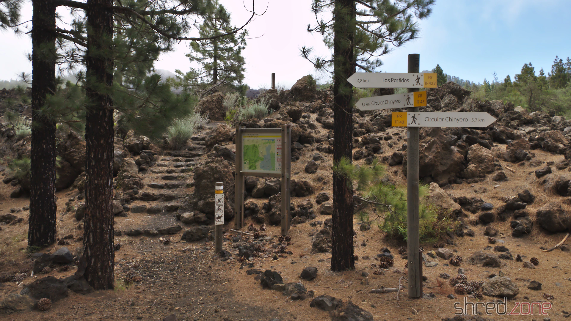 Der Startpunkt ist ein winziger Parkplatz an der TF-38, die von der Stadt Chío zum Teide-Nationalpark führt. Von dort folgen wir einfach der Route Circular Chinyero, die auch mit weißen und gelben Pfosten markiert ist. Unsere Wanderung beginnt in einem Kiefernwald, führt dann über eine Ebene aus vulkanischem Gestein und kehrt schließlich durch eine Mischung aus Kiefernwäldern und vulkanischer Landschaft zurück.