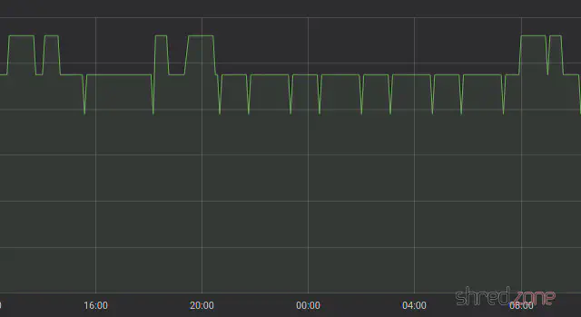 Now the noise floor level has settled to an average of 95 µVrms here. In the graph, one can see that the level is raised at some time, but then reduced again after a while. One can also see the frequent attempts to lower the level a bit further, immediately followed by a raise back to the average level. It seems that the AS3935 and the ESP have negotiated a good compromise. 😉