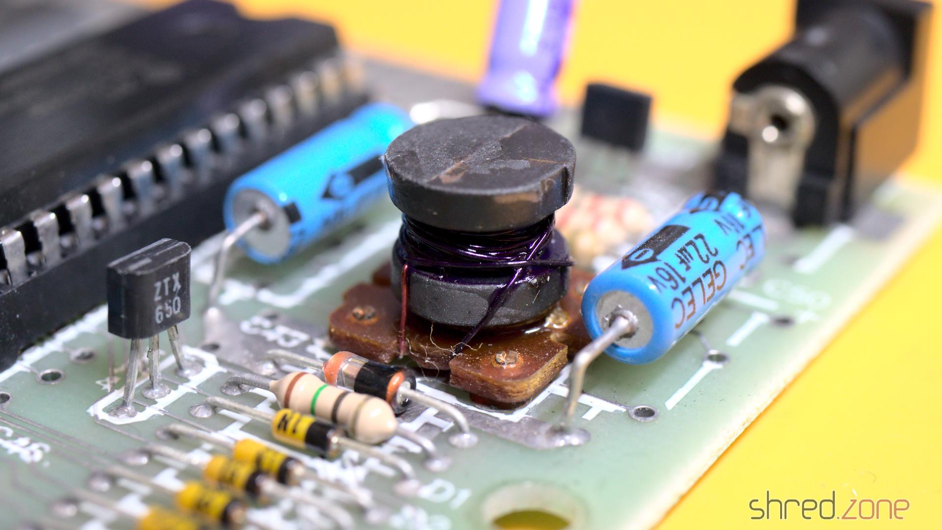 I soldered in the link and replaced all electrolytic caps with Vishay ones. I also replaced the 7805 voltage regulator with a Traco Power TSR 1-2450. This modern DC/DC converter is a drop-in replacement that needs no heatsink, and is small enough to still fit into a classic ZX Spectrum case.
