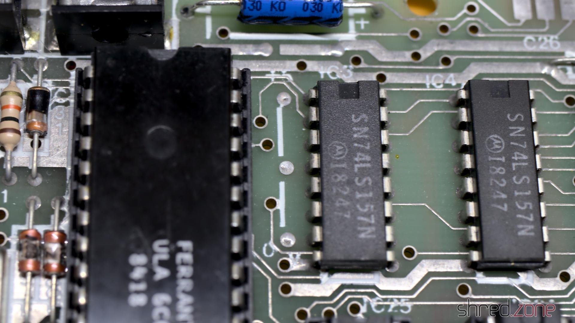 The manufacturing dates of the components tell an interesting story. This computer has probably been manufactured around the end of 1982. However, all chips that are related to the upper 32KB RAM are socketed, and some were made in 1983. I guess it was originally built as 16K model, and has been extended to the full 48K a year later. As the only chip on this computer, the ULA was made in 1984, so maybe it had been replaced around then.