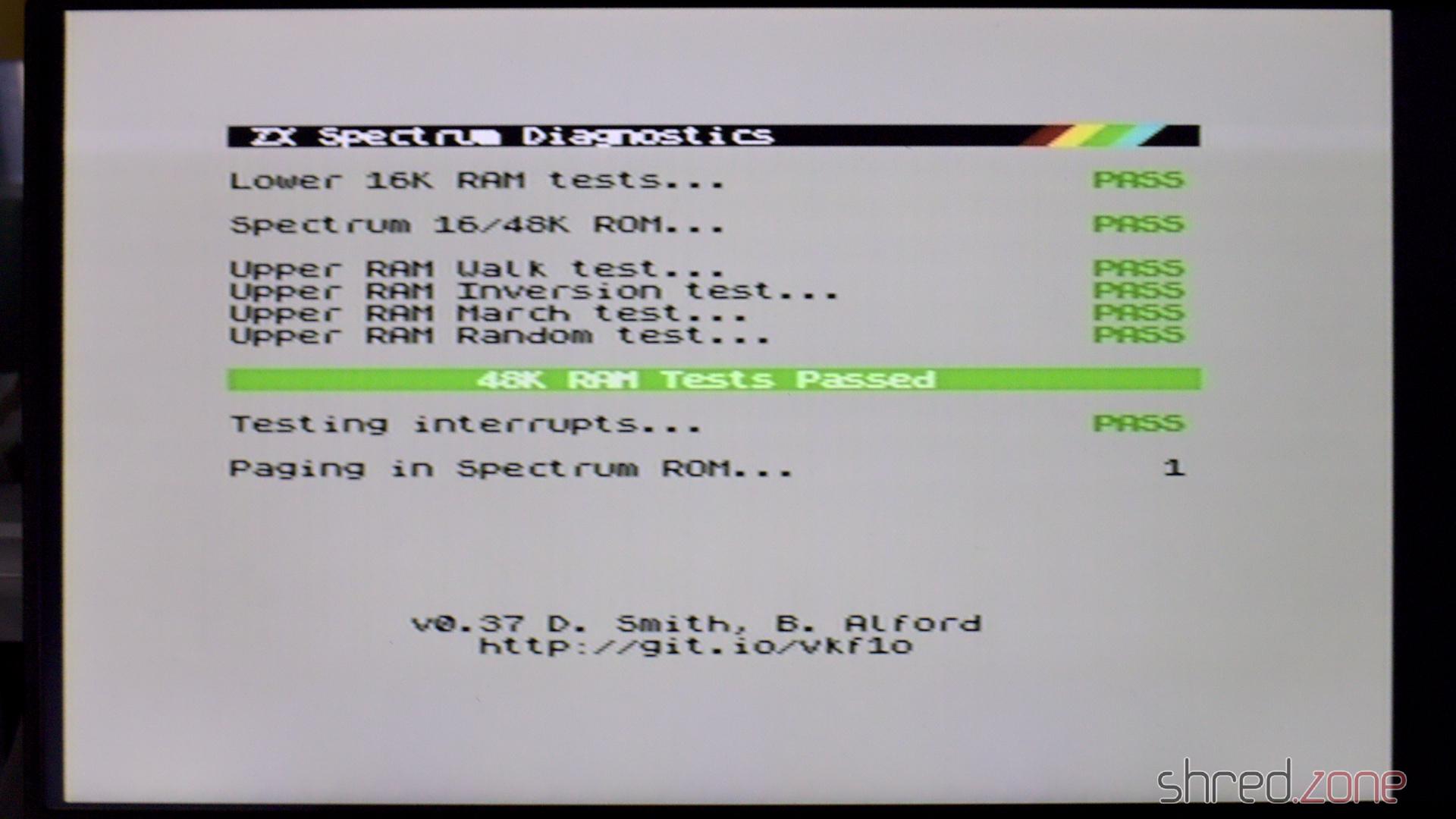 Finally, I ran the ZX Spectrum Diagnostics tool. All tests passed, even those of the upper RAM.