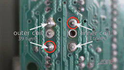 After that, we do the same with the outer coil, having 39 turns. It is important that both coils are wound in the same direction. It doesn’t matter whether both coils are wound clockwise or counter-clockwise, as long as you use the same direction for both coils. The original coils are wound counter-clockwise when looked from above.