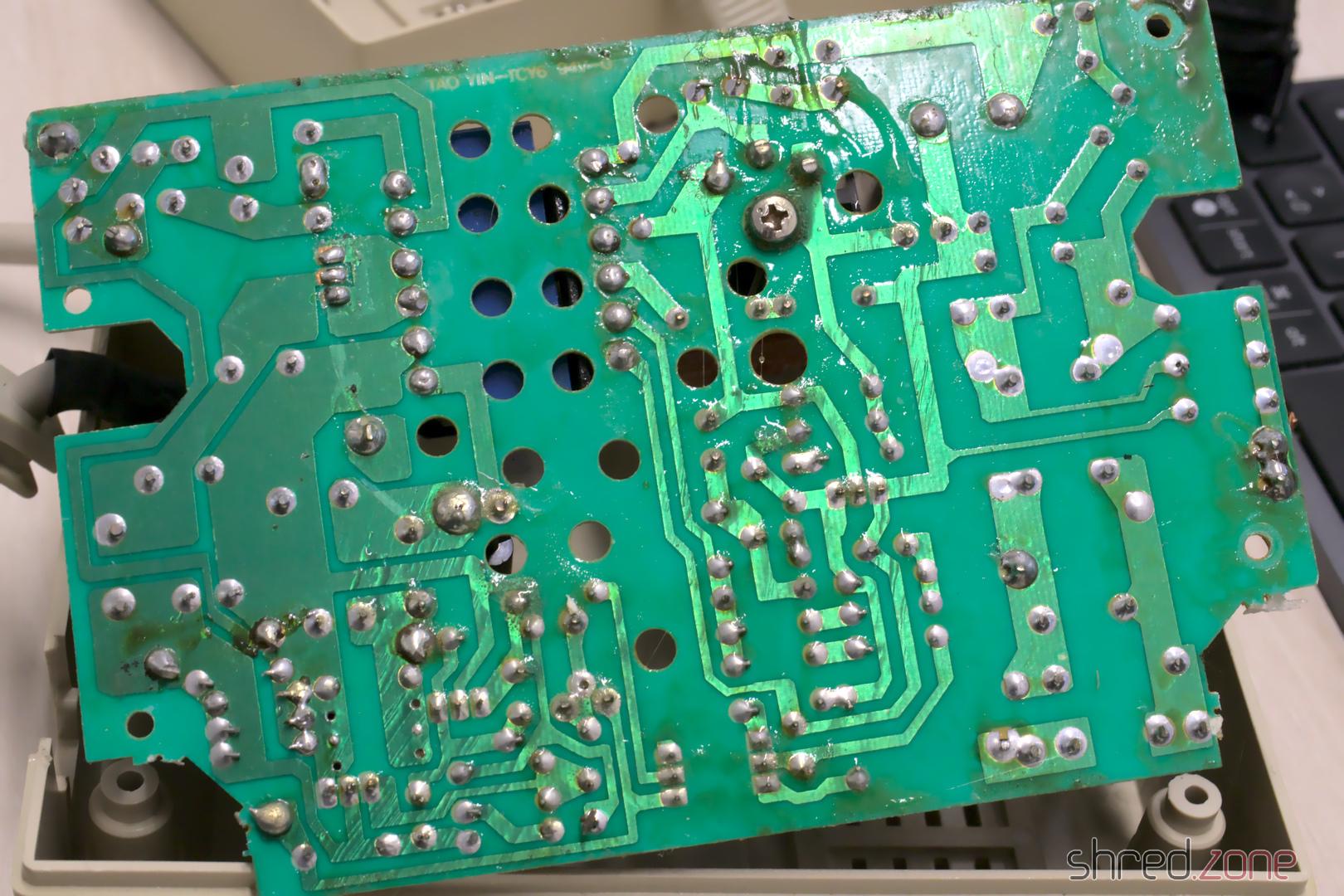 I have to admit: My fingers were itching to plug the Amiga into the wall socket and the TV right away. Fortunately I didn’t do that. The circuit board of the power supply looks like it has been soaked in coke: