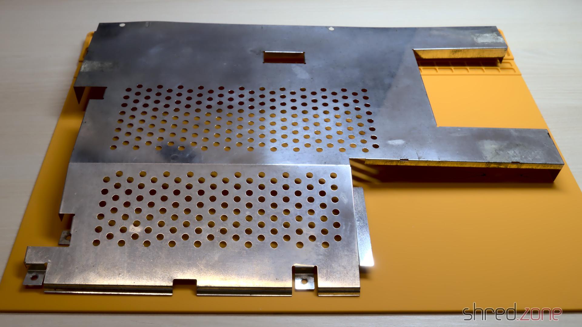 The case is not quite as yellowed as I had feared, nevertheless the ugly “nicotine yellow” has to go. On the right side of the case I had added four switches. At that time the Amiga was rather a commodity, and I didn’t care much about it. Today I scolded my old self for drilling holes into that beautiful case. So there’s one more item on my to-do list: fill the holes.